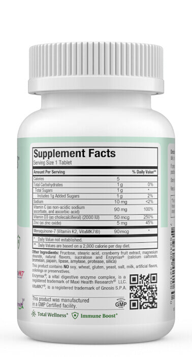 All new Maxi Health’s cherry vanilla flavored "Chewable Vitamin K2 with D3™” contains the most active form of Vitamin D and K. We use VitaMK7® Menaquinone-7. Widely sought after by consumers in the know, it is the best option for bioavailability and greater stability over the time. It offers support for blood clotting, calcium regulation, and if that were not enough, it’s an antioxidant too!