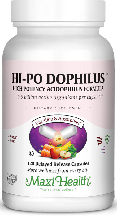 Hi-Po Dophilus™ is a probiotic in a capsule. Probiotics are live organisms (which need to be abundant) in your intestines to support assimilation of nutrients and infection prevention. Hi-Po Dophilus™ has both of the most important probiotics that you need! Lactobacillus acidophilus (providing 10 billion active organisms) and Bifidobacterium Bifidum (providing 500 million active organisms) which can replenish and even enhance the correct quality and quantity of healthy bacteria lost. See the table below for how it is lost and what it means to have it restored.