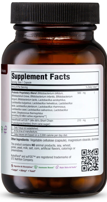 Maxi Active Pro 50™ offers you 15 probiotic strains, 500 mg per serving, in a delayed release capsule. Probiotics are live organisms (which need to be abundant) in the small intestines. They support assimilation of nutrients and infection prevention. As they become depleted, they not only cease their digestive/food assimilation function but also fail to act as a barrier. This can result in toxins passing between cellular connective junctions, into the blood stream. They thus bypass the body's normal excretory channels. This is known as leaky gut syndrome.