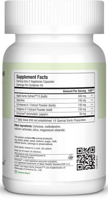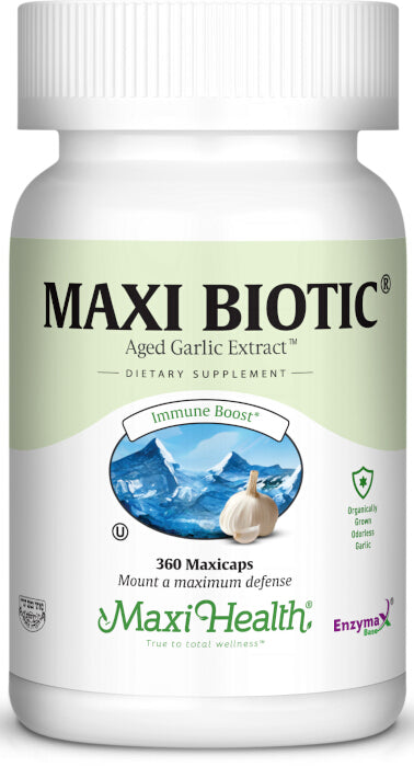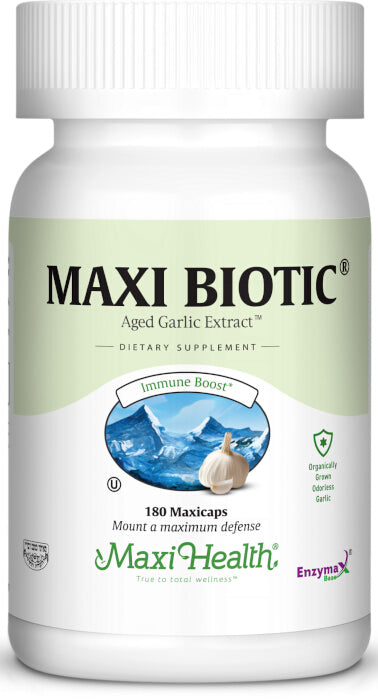Maxi-Health Research® has joined Wakunaga of America Inc®, the producers of natural high quality, odorless garlic and created Maxi Biotic. We combine high potency pure Kyolic odorless garlic with Echinacea extract, Oregano extract, and Earthrise® spirulina.