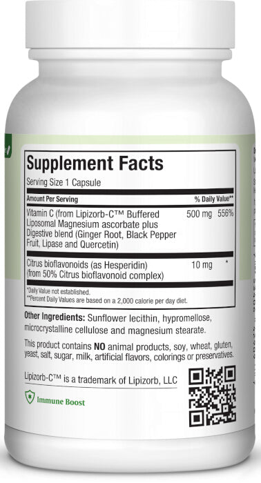 Maxi Lipizorb-C™ 500 mg capsules is a liposomal form of vitamin C. It delivers a better absorption to your body, it is retained in the system for a longer period of time for better & longer protection. In addition, it’s a buffered form of vitamin C that protects your sensitive stomach lining, and delivers the vitamin C to your cell membranes where it is needed.