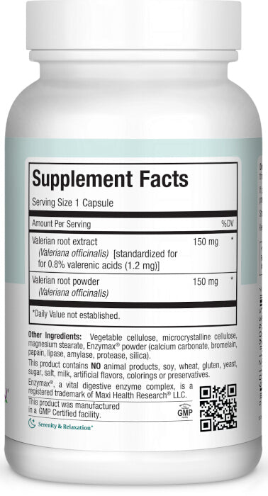 For those who are looking for valerian root to provide herbal support for stress, sleep, menstrual discomforts, and mood, Maxi Valerian™ offers you a 0.8% Valerenic Acid, standardized extract and an equal amount of valerian root powder. Valerian root is not addictive and does not cause grogginess.