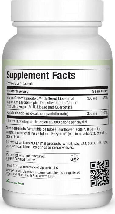 Pantomax Supreme™ combines pantothenic acid (vitamin B5) with Vitamin C, which offers nutritional support for many bodily functions.