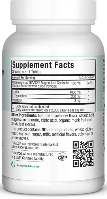 The sleep support you have been day dreaming about is here! Sleep-O-Chew™ is the new Maxi Health formula. It has three of the best known natural ingredients, so you only need one container. It provides you with magnesium, Inositol, and L- Tryptophan. IIt has a natural Strawberry flaove that is sweetened with organic Stevia leaf and Munk fruit extracts.