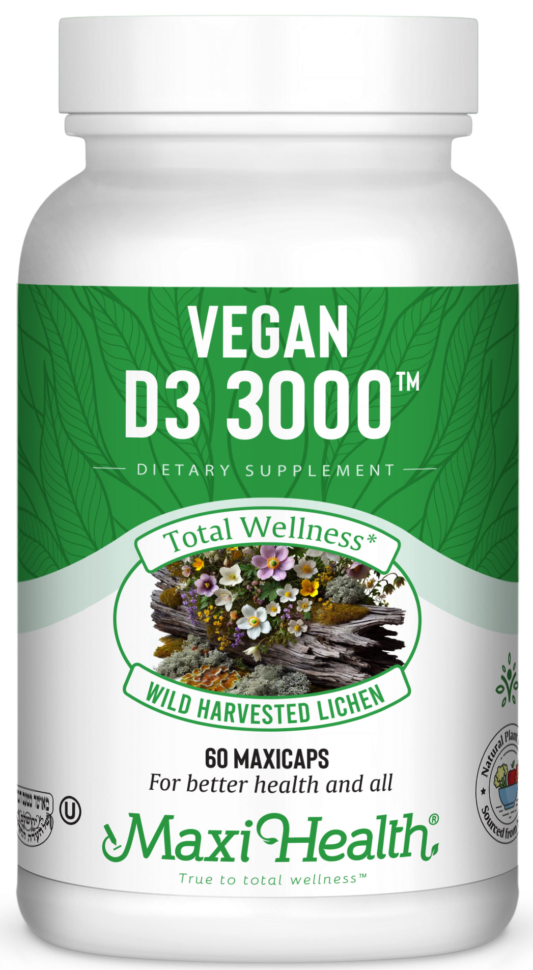 Vegan D3 3000™ from Maxi Health is here! Instead of using the lanolin from sheep’s wool you can now have a choice with our vegan alternative. Vegan D3 3000™ is the same cholecalciferol except it is processed from wild harvested lichen. Lichen is a plant-like growth found on tree bark and sometimes rocks and among other nutrients is a bountiful source of cholecalciferol.