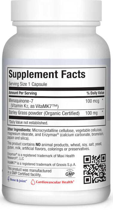 Why chose Vitamin K-Max™ by Maxi Health? That's because it has Vitamin K2 and barley grass.